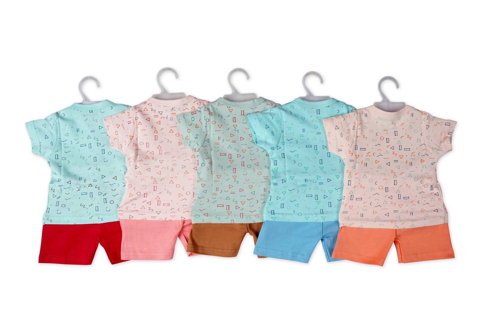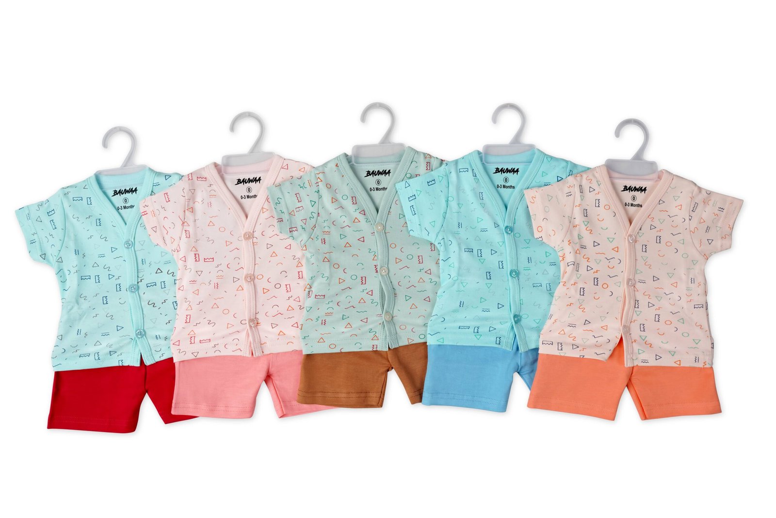 Crafted from 100% pure cotton, it is soft, breathable, and safe for delicate baby skin. The playful geometric print design adds a fun touch, making it perfect for everyday wear, summer outings, or as a thoughtful newborn gift. Available in 5 refreshing color combinations.